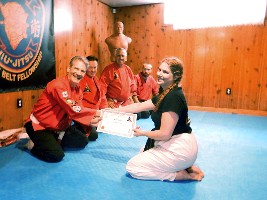 The last such occasion was in 1972. Mariane trained with Professor Ray in Ottawa, and Professor Dave in Kingston has been working with Gabrielle. Both candidates did thier dojos, senseis and themselves proud. Prior to and during thier exam they exhibited Fellowship values of honour, discipline, respect and friendship in an exempliary manner. The Fellowhip Board of Directors looks forward to assisting both new black belts in achieving their goals and securing the future of our Fellowship.